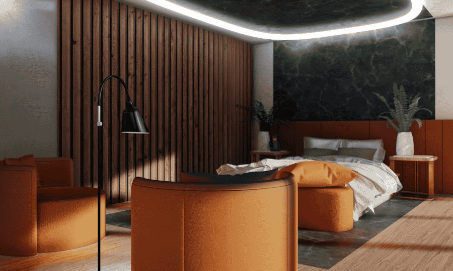 As you enter Moonlit Manor, you'll be immediately captivated by the calming ambiance. Soft, ambient lighting and exquisite décor create a sense of calm, making it the ideal space for unwinding. The room features a spacious king-sized bed with premium bedding, ensuring a restful night’s sleep. The carefully chosen furnishings complement the room’s tranquil design, offering a perfect blend of luxury and comfort.