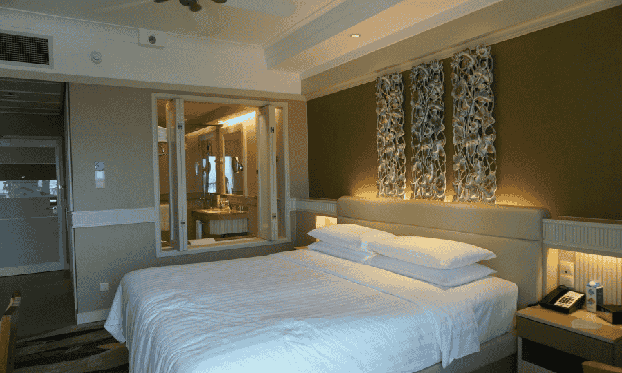 The en-suite bathroom is a sanctuary in itself, with a large soaking tub and a rain shower, providing a spa-like experience. Premium toiletries, plush towels, and soft bathrobes further enhance the feeling of indulgence.